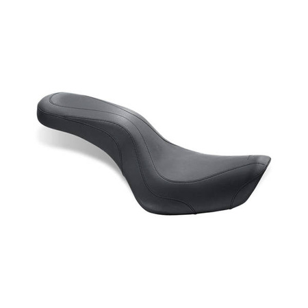 A low and lean seat, front width 11,5" and rear width 7", with detailed stitch work that feels good for both the rider and the passenger