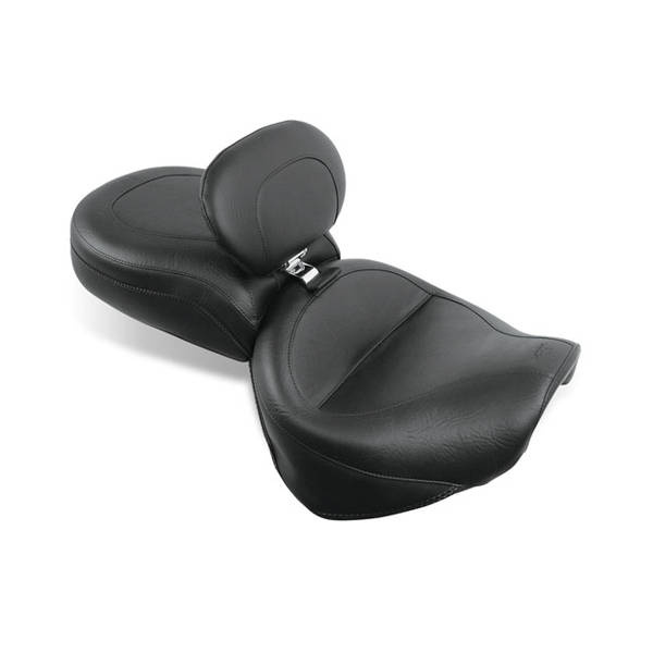 A plain touring seat with 17" wide passenger area, 13" wide passenger seat and fully adjustable, easy removable driver backrest. The Standard Touring platform features several design improvements over the stock seat. A deeply pocketed driver bucket sits you in the ideal cruising angle at a similar reach to the controls compared to stock.
