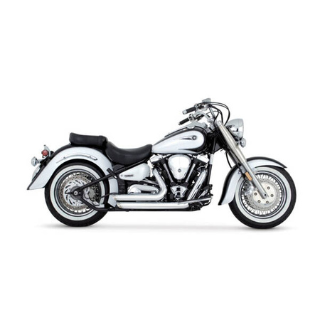 The Shortshots Staggered; a revolution in blue proof exhaust technology. Vance & Hines delivers the short, fat, straight pipe look with twin slash cut ends. Never before has style and performance on this level been available at such an unbeatable value. With 1 3/4” head pipes stepped to a 2 1/8” muffler body and almost invisible 220 degree coverage heat shields, this system is available in chrome. Baffles, mounting hardware, and instructions are included for a hassle-free, perfect fit every time. Quiet baffle: 981423