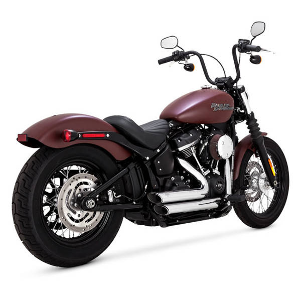 The unmistakable slash cut ends on this exhaust system makes it different from the regular Shortshots. The deep hot rod roar shows everybody there is more to this system than good looks. Stepped headers from 1 3/4" to a 2 1/2" muffler body and 220° coverage full length heat shields that are almost invisible. Note: FLSB Sport Glide & FLHC/S Heritage Classic require 565720 saddlebag support kit, right side only, when using OEM saddlebags. Note: See 981157 for stock replacement baffle with billet tip. Note: See 981423 for optional quiet baffle. Note: See 559171 for optional extra quiet 'Super Q' baffle.