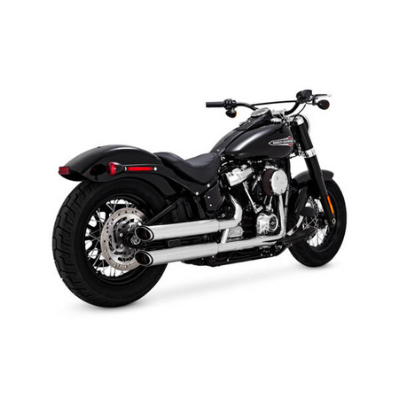 Chrome. One of the best ways to ease into customizing is with the addition of a slip-on muffler set. These Twin Slash Rounds mufflers will give the unmistakable Vance & Hines look and open up the performance potential of your bike and ready for later engine upgrades, if desired. The low restriction louvered core baffles are pre-installed. Included are virtually invisible 3 inch full coverage heat shields which makes the 2-1/2" diameter muffler bodies blue-proof. Note: See 568712 for stock replacement baffle. Note: See 981790 for competition baffle (+2 to +3 dB). Note: See 981791 for optional quiet baffle (-3 to -4 dB).