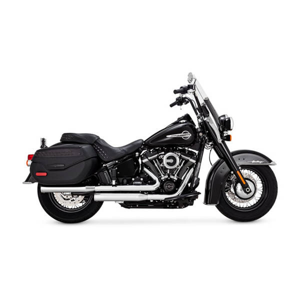 Chrome. There's nothing like the right set of mufflers to match the M8's sound level to its impressive potential performance. It's done with these Eliminator 300 slip-ons, which come with 3" diameter muffler bodies and billet end caps. Complete with removable glass-wrapped acoustic tuned baffles to give that sumptuously resonant tone. Sound, style and overall great looks are finished with precision machined billet end-caps, inspired by the Vance & Hines Flat Track Race Team. Note: See 562914 for optional quiet baffle.