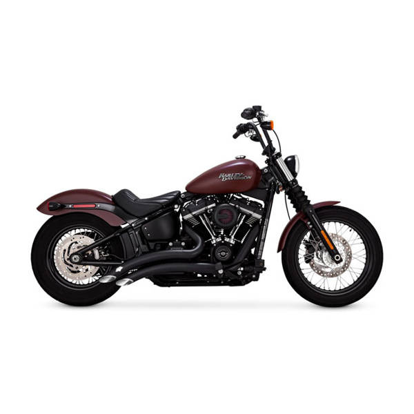Matte black. Streamlined curves, that never seem to end, looks that demand a second glance. Like all Vance & Hines pipes the Big Radius comes with full coverage 2 1/2" diameter plasma cut heat shields that preserve the 'new' look and will virtually eliminate visible blueing. Power, torque and the signature Hot-Rod sound are all included. Baffles are removable. Note: FLSB Sport Glide & FLHC/S Heritage Classic require 565720 saddlebag support kit when using OEM saddlebags. Note: Comes with 18mm O2 threads, includes 12mm conversion inserts and sensor-hole plug set so exhaust will fit all model years. Note: See 981797 for replacement baffle. Note: See 558779 for optional quiet baffle.