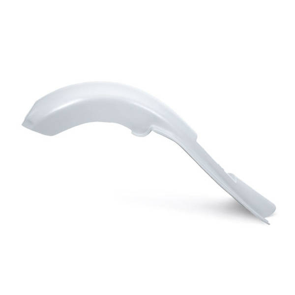 Hand-laid unpainted gel coated stiff, strong, straight & light fiberglass rear extended fender with a 7" stretch. For a custom recessed license plate installation. Recess height is 22cm. Includes pre-installed license plate mounting hardware for mounting the license plate or a license plate holder. Note: Great fit with the Killer Custom 7" extended bags. Note: Requires drilling and fitment checks before painting and final assembly.