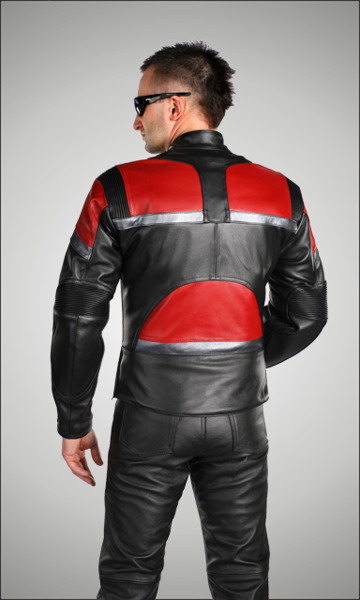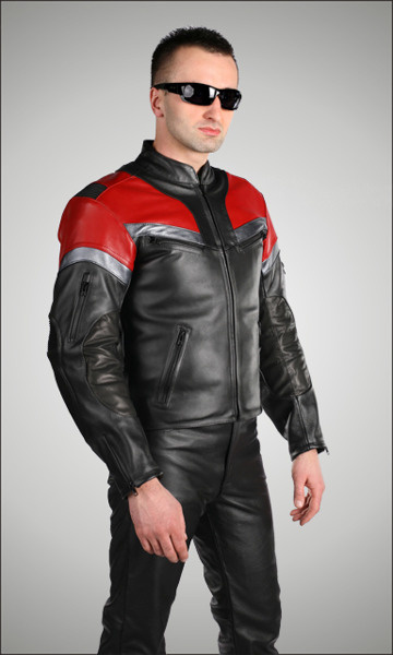 Kurtka motocyklowa wykonana z wysokogatunkowej skóry bydlęcej hydrofobizowanej o grubości 1,2 mm.