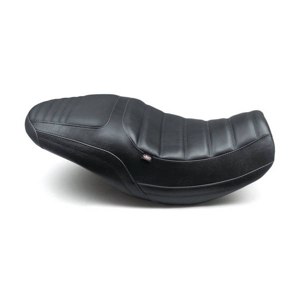 One-piece construction. Enhance the overall ride with a contoured driver bucket that keeps the rider seating position back and off the tank for a feeling of sitting “in” the motorcycle rather than “on” it. The improved positioning offers a more secure riding experience compared to stock. Features include clean, detailed seam lines with classic tuck-&-roll stitching, contrasting “gripper” mesh inlay on the pillion section to prevent passengers from sliding, and convenient under-seat storage for tool kits.
