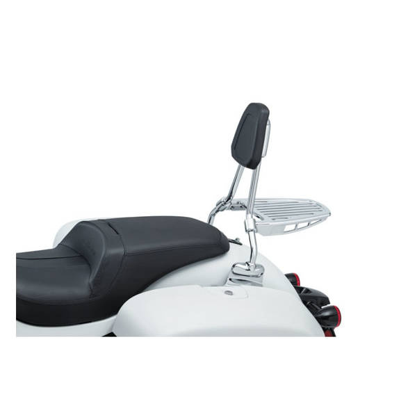 This model specific 21" (53cm) high sissy bar comes with everything needed to install & ride. Includes mounts, hardware and a cushioned backrest pad made from weather- and UV-resistant PU material. Easy to install durable all steel construction (mounts and uprights) with premium chrome plating. The backrest pad can be easily removed, when not required, for the clean look. Note: An optional luggage rack is separately availble as 906384.