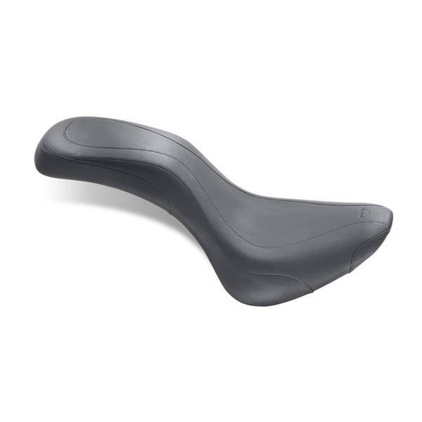 A low and lean seat, front width 12" and rear width 8,5", with detailed stitch work that feels good for both the rider and the passenger