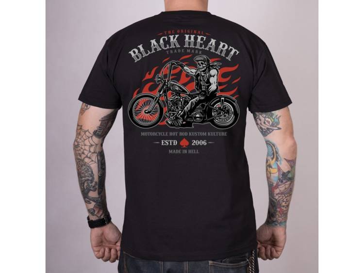 Jeżeli Twoje serce jest jednakowo motocyklowe, równie czarne, wbij się w koszulkę krótki rękaw BLACK HEART FLAMES RIDER razem z Black Heart i metalRoute.