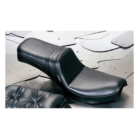 Foam. 10" rider & 9" passenger seating area width. A lower than stock profile for a deep, comfortable seating area. Plenty of lower back support for all day cruising without the bulk of large Touring seats.