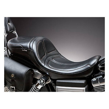 Foam. Maverick stitch upholstery. Rider seat 12.75" wide, passenger seat 11.5" wide. Lustrous comfort, just like the standard Maverick, but the seating area is positioned 2 inches further backward to accomodate the longer legs of tall riders.