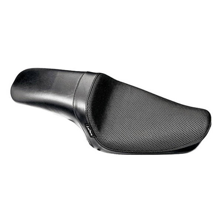 Foam. Basket Weave upholstery. 10" rider & 8" passenger seating area width. A lower than stock profile for a deep, comfortable seating area. Plenty of lower back support for all day cruising without the bulk of large Touring seats.