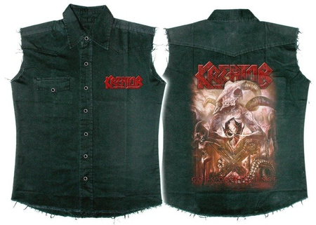 Cechy kamizelki: - kolor CZARNY, - wykonana jest ze 100% wysokogatunkowej bawełny. Bawełna jest gruba, mięsita, wysokiej jakości i odporna na niszczenie, w strukturze przypomina jeans, - kołnierz, - efektowne, postrzępione wykończenia na rękawach i u dołu, - zapinana jest z porzodu na czarne, metalowe zatrzaski, - z tyłu duży wysokogoatunkowy nadruk – tzw. „ekran”, - z przodu na lewej piersi, wyszywane logo KREATOR, - z przodu na prawej piersi kieszeń zapinana na czarny, metalowy zatrzask. Wszystkie produkty, w tym nadruki, hafty i naszycia są dziełem RAZAMATAZ (tylko brytyjsko-europejskie rączki biorą udział w produkcji).Kupiłeś ten produkt? Podziel się opinią, dodaj zdjęcie i zgarnij 3 pkt.