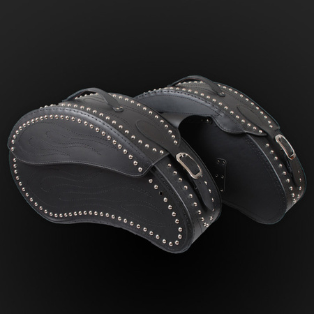 • Skórzane sakwy motocyklowe polskiej firmy LEDMAR. Wykonane z wysokogatunkowej skóry bydlęcej. Rozmiary: Długość-57 cm, Wysokość-34 cm, Szerokość-19 cm. Zamykane na paski skórzane. Skórzane paski montażowe są w komplecie. Wykończenie nierdzewnymi puklami.