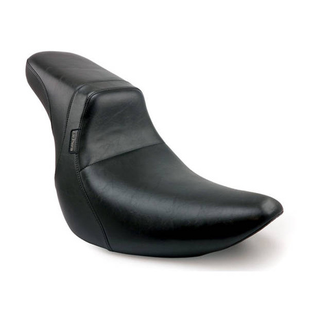 Foam. 11" rider & 9" passenger area seating width. A lower than stock profile for a deep, comfortable seating area. Plenty of lower back support for all day cruising without the bulk of a large touring seat.