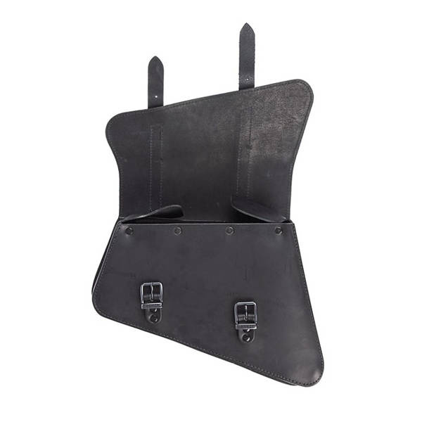 Pasuje do: Przede wszystkim Harley Davidson Sportster. Sakwa z naturalnej skóry. Instaluje się ją za pomocą dołączonych skórzanych pasków. Posiada specjalnie wzmocniony tył HPDE. Przybliżone wymiary: szerokość 28cm x głębokość 11cm x wysokość 38cm.