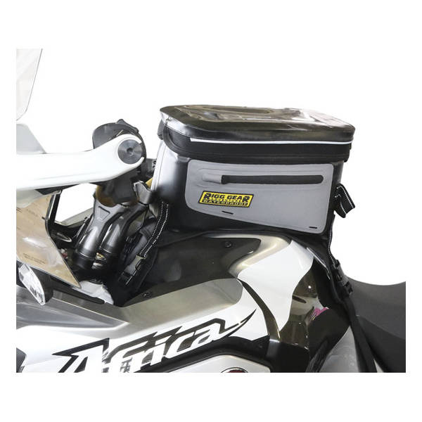 - 100% waterproof PVC tarpaulin with electronically welded seams. - UV-coated outer material cleans easily and prevents slipping or marking. - Larger size is perfect for Adventure bikes. - Quick release strap system for easy attachment and refueling. - Protective base material prevents slipping or marking. - Main compartment has an adjustable divider to help separate your belongings. - Removable inner self-fastening straps to better secure contents. - Waterproof flap helps keep dust, dirt and mud away from waterproof zipper. - Water resistant side pockets. - Bag maintains shape and has reflective piping. - Clear touch screen device friendly top pocket. - Mesh pocket under lid for maps, insurance card and cards. - Rubberized carry handle for easy transport. - Main compartment measures: 12" (30.5cm) L x 8" (20.3cm) W x 7" (17.8cm) H. Capacity 11 liter.