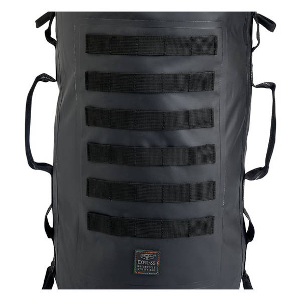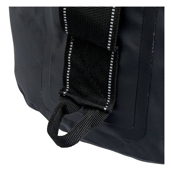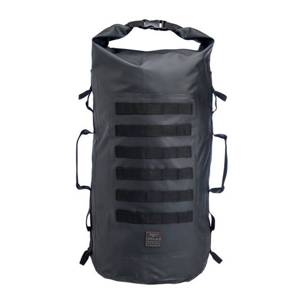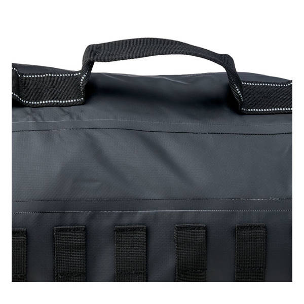 Overall dimensions full & closed: 22" (56cm) tall x 12" (30.5cm) wide. The 100% waterproof multi-day travel companion. Manufactured from UV-Treated 500/1000D Tarpaulin PVC. With roll-trop closure with reinforced nylon quick-release buckles to keep contents sealed on your bike, boat, trailer, car or wherever you choose to use it. Features a double-thick bottom construction with external PVC coating for greater durability, 2-inch-wide, ballistic-grade polyester nylon loops and box-stitched handles on sides feature woven reflective thread for better nighttime visibility. 6 rows of MOLLE for mounting additional gear. With 2 center mount carrying handles for off-bike use. The interior volume can hold 65 12-ounce cans.