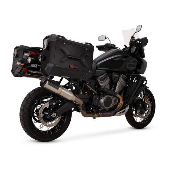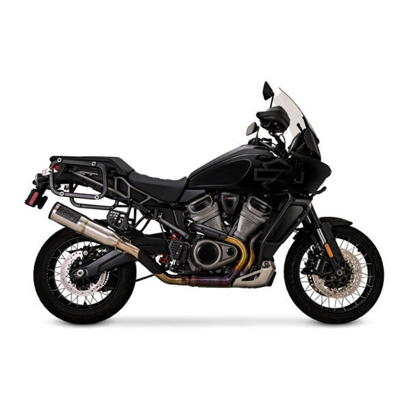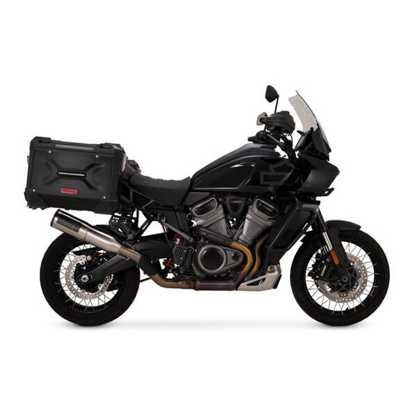 This Adventure Hi-Output 450 is a slip-on muffler, specifically designed for the 1250 Revolution Max engine. From 304 stainless with a brushed finish which provides a visual upgrade over the stock black version while offering a weight reduction of almost 6lbs (2.72kg) and a 5 horsepower and 5ft. pds. torque increase. Other features include: - Cutting-Edge baffle design delivering bold rumble while meeting SAE J2825 decibel levels. - Stepped 4.5-inch diameter slip-on. - CNC machined billet end cap. - Improved rider boot clearance. - Compatible with Harley-Davidson factory saddlebags and centerstand. - 50-State emissions compliant.