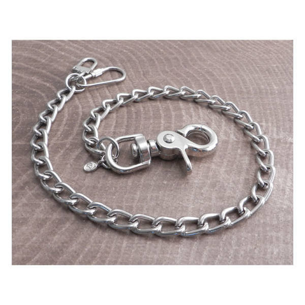• Ciężki rockowy łańcuch do spodni i portfela marki - AMIGAZ z gwarancją najwyższej światowej jakości wykonania i użytych materiałów. Made in USA. Wykonany z chromowanej stali. Długość 41cm. Ogniwa łańcucha 1,6 x 0,95 cm. Solidne karabińczyki.