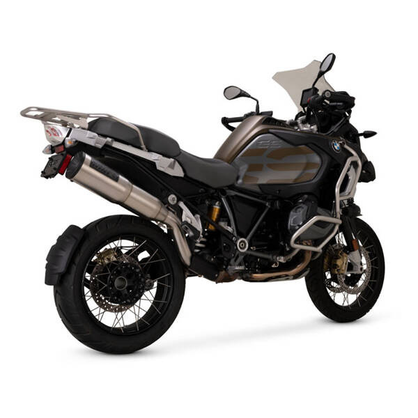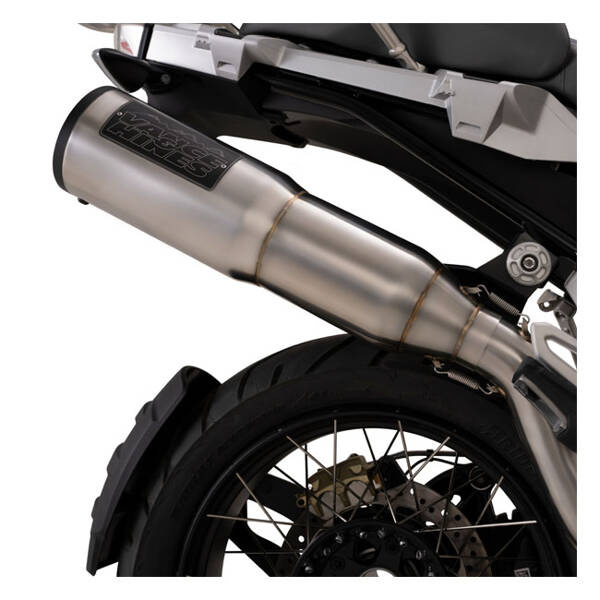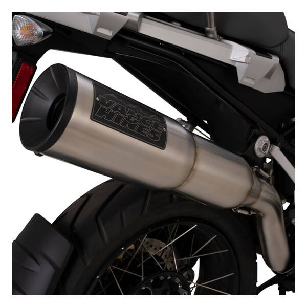 The Vance & Hines Hi-Output Adventure 500 is the largest capacity exhaust ever made by Vance & Hines, manufactured with a 5-inch diameter, high-grade, 304 stainless steel tube. The system features a brushed, works-style finish, a CNC-machined, billet aluminum endcap, black heat shield, stainless mid-pipe, and spring clip assembly, while having a lower weight than the stock exhaust. The stepped exhaust delivers smooth tractable torque throughout the powerband. The glass-wrapped, perforated baffle core design delivers a rich, smooth rumble while still meeting SAE J2825 sound level standards. In addition, the system is 50-state emissions compliant. - Designed specifically for the BMW Boxer 1250 motor - Cutting-Edge baffle design delivering rich boxer rumble while meeting SAE J2825 decibel levels - Stepped 5-inch diameter slip-on delivers increased HP and TQ - CNC machined billet end cap - Compatible with BMW factory panniers and centerstand