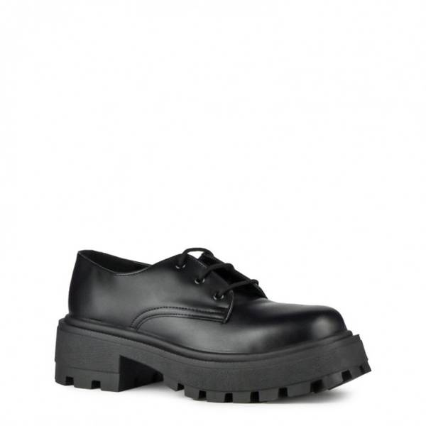 • Czarne, sznurowane buty na platformie, wykonane z wysokiej jakości wegańskiej skóry. Znakomite uzupełnienie rockowych stylizacji. Podeszwa 4-5 cm. Produkcja polska. Najwyższa jakość użytych materiałów gwarantuje długie używanie