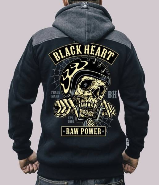 Jeżeli Twoje serce jest jednakowo motocyklowe, równie czarne, wbij się w bluzę BLACK HEART Raw Power razem z Black Heart i metalRoute.