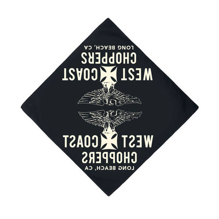 • Markowa bandana firmy WEST COAST CHOPPERS. Ręcznie wykonana. Rozmiar 50 x 50 cm. Wykonana w 100% z wysokogatunkowej bawełny.