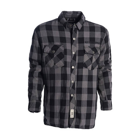 Flanelowa koszula na motocykl. Wewnętrzna podszewka z poliestru i warstwą ochronną z włókna Aramid DuPont™ Kevlar®. Zewnętrzna podszewka 100% z bawełny. Wykonana z funkcjonalnej tkaniny z oddychającą, wodoodporną membraną. Kieszenie na ochraniacze.