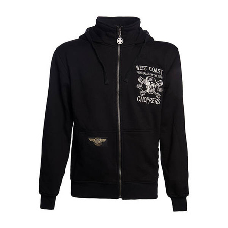 • Markowa bluza z kapturem amerykańskiej firmy WCC. Zapinana na suwak. Gruba i mięsista, 330g. Wykonana w 80% z bawełny i w 20% z poliestru. W klimacie motocyklowym i rock'n'rollowym. metalRoute gwarantuje jakość i oryginalność produktu.