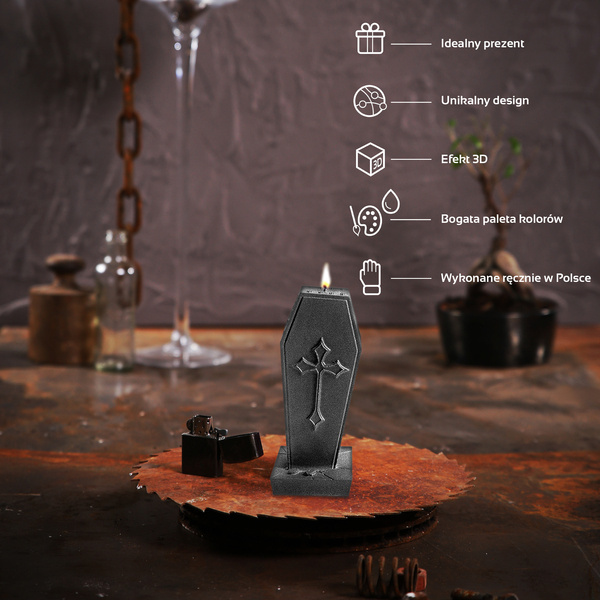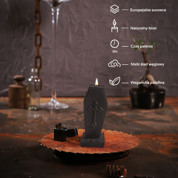 świeca CANDELLANA Coffin With Cross Black Metallic