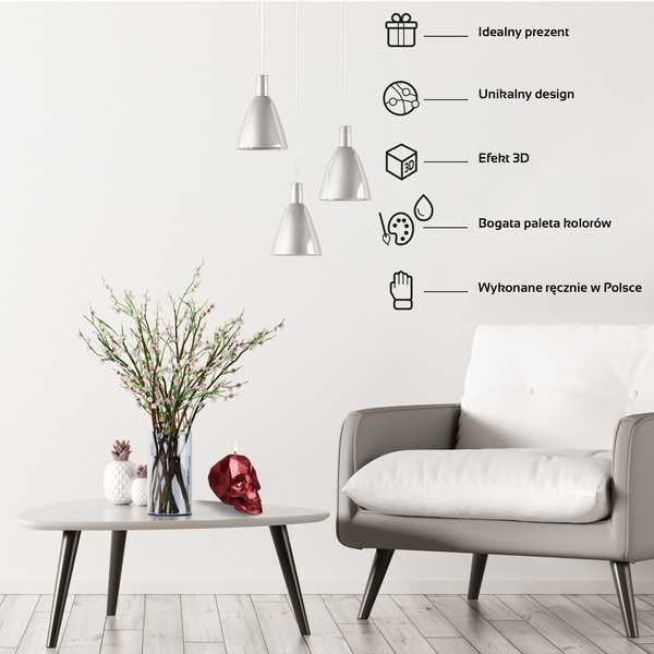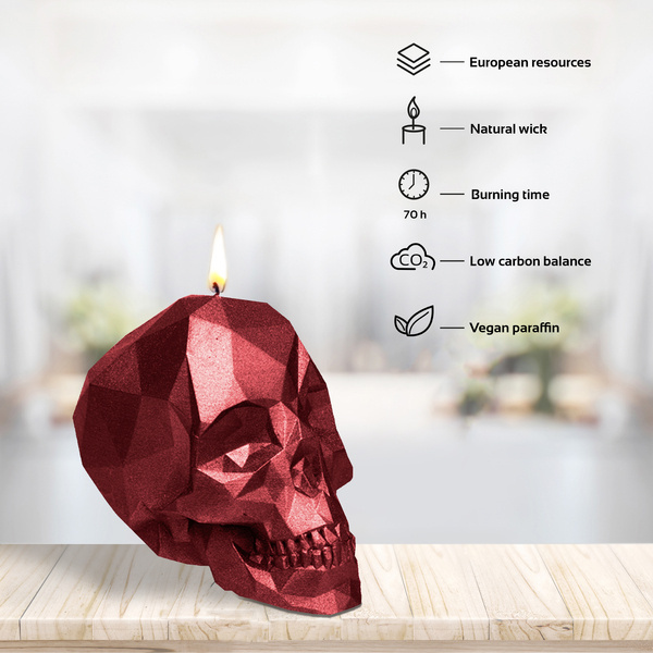 świeca CANDELLANA Skull Low-Poly Red Metallic Big
