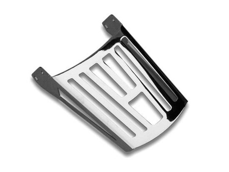 • Bagażnik uniwersalny. Wykonany ze stalowej chromowanej blachy. Pokrycie galwaniczne to miedź, nikiel i chrom. Szerokość zewnętrzna 265mm, rozstaw otworów mocujących 50mm, montaż pod śruby M8. Mocowany do oparcia produkcji RoadStyler.