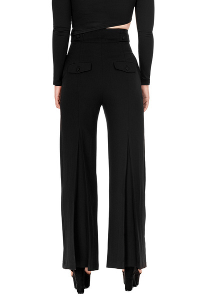 Niezwykle wysoki stan tych spodni ma nie tylko zdolność wysmuklenia sylwetki, ale także wydłużenia nóg, nadając Ci elegancji i pewności siebie. Kryty suwak z aplikacją w kształcie półksiężyca dodaje im niepowtarzalnego uroku i tajemniczego charakteru.