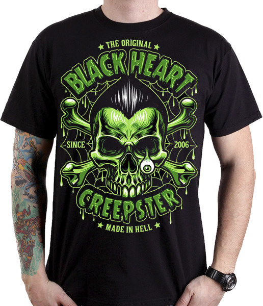 Jeżeli Twoje serce jest jednakowo motocyklowe, równie czarne, wbij się w koszulkę krótki rękaw BLACK HEART CREEPSTER razem z Black Heart i metalRoute.