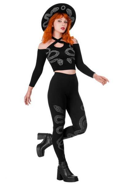 Żeby uzyskać pełny zestaw, idealnie skomponowaną całość, warto zestawić tę bluzkę z legginsami lub spodniami ozdobionymi wzorem węża. To połączenie nada Twojej stylizacji spójności i wyjątkowego charakteru
