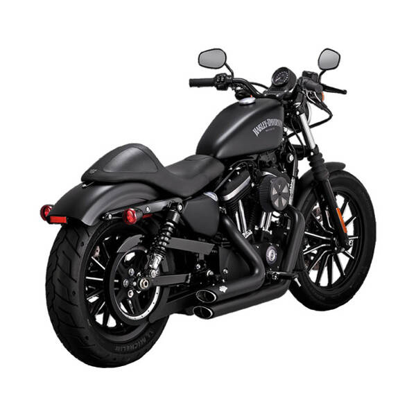 Matte black ceramic coated finish. Unleash your motorcycle's true identity as a hell-raising fun machine with Vance & Hines Shortshots Staggered. The sharp clean lines of Shortshots Staggered will transform the look of your V-Twin steed, and now features our innovative PCX™ Technology with chambered high-flow catalysts, you'll feel the pull right off the line with increased torque and an aggressive hot rod roar that is gonna turn heads. - PCX™ (Power Chamber Exhaust) Technology - Chambered high-flow catalyst cartridge designed to increase torque - Full coverage heat shields - 49-State Emissions Compliant. Vance & Hines innovative PCX™ Technology: More Power & Less Heat. The PCX™ (Power Chamber Exhaust) Technology are factually chambered high-flow catalysts. Used to increase mid-range torque for more responsive acceleration off the line. They are positioned downstream for up to 20% less heat at the floorboards / footpegs and 50% less heat at the collector, to optimize rider comfort over the stock system. PCX™ technology uses a high-flow double-matrix catalyst that improves torque delivery through the mid-range for more responsive acceleration. All while producing an even deeper full-throated rumble, all with no compromise to the styling of any Vance & Hines exhaust system.