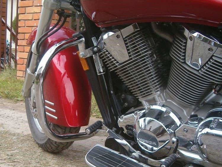 • Klasyczne chromowane gmole przednie do HONDA VTX 1800 R/S/T RETRO. Wersja STANDARD bez oszlifowanych spawów i połączeń. Szerokość ok 80 cm. Wykonane z precyzyjnej rury stalowej o średnicy 32 mm i grubości 2,5 mm. Konstrukcja jednoczęściowa.