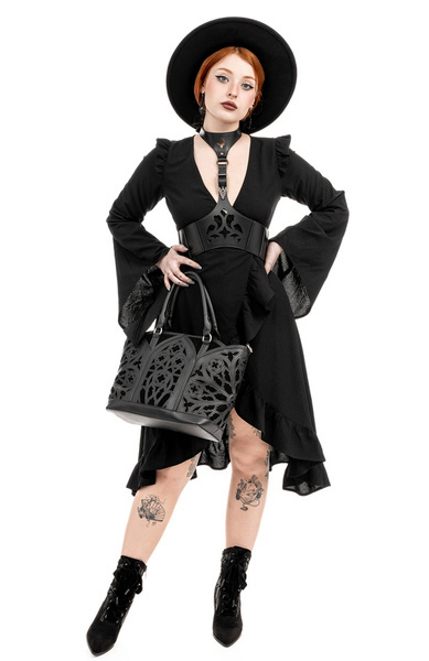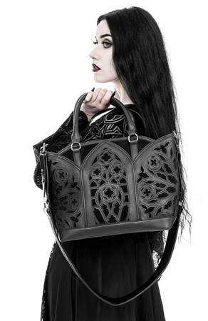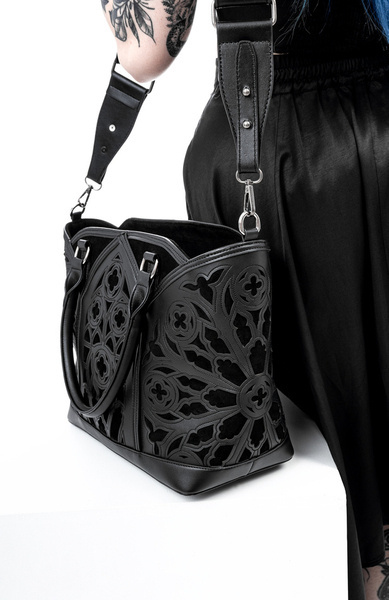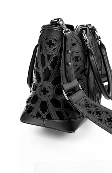 Gotycka torba na ramię wykonana jest z wytrzymałej skóry syntetycznej i sztucznego zamszu (100% VEGAN).