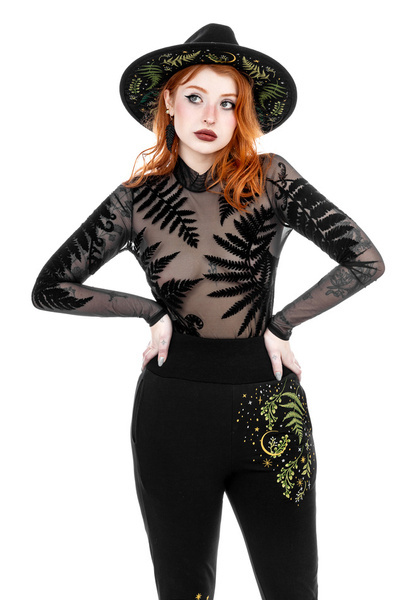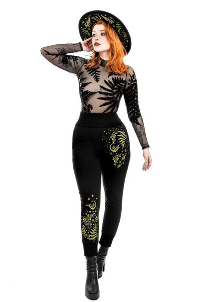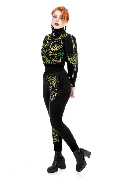⋆ Wygodne spodnie dresowe z kieszeniami stworzone dla miłośniczek wiedźmowego gotyku i rustykalnych, roślinnych motywów