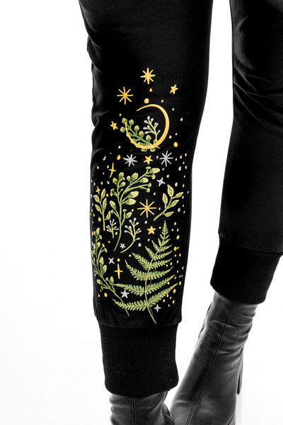 ⋆ Realistyczny haft roślinny wyszyty na górnej i dolnej części nogawki