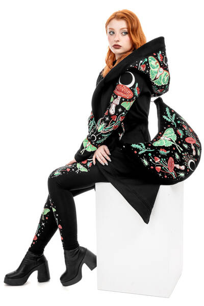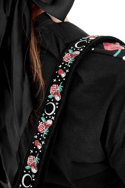 ⋆ Fantastyczny, misterny haft na korpusie i pasku: księżycowa ćma otoczona muchomorami, magicznymi grzybkami, chrząszczami, leśnymi roślinami i gwiazdami