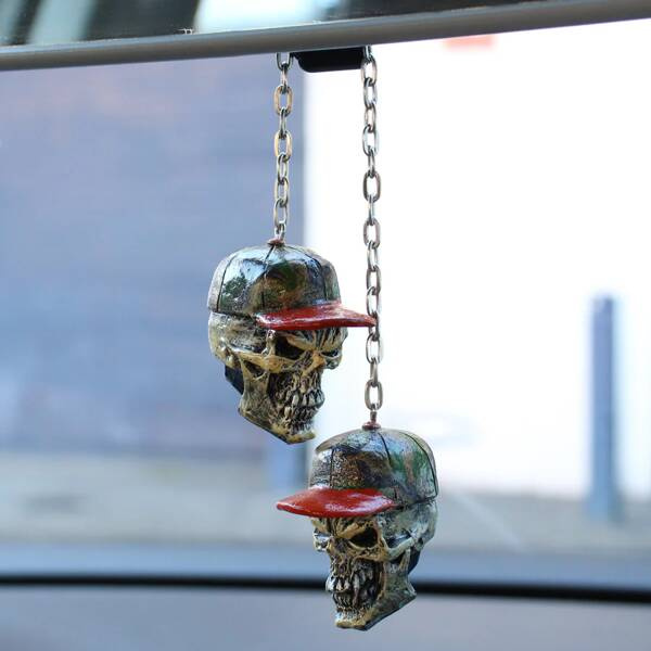 Brelok na lusterko marki LETHAL THREAT. Made in USA. Świetny alternatywny dodatek dla każdego samochodu. Ręczne malowanie. Gwarancja jakości wykonania i materiałów. Rozmiar 1 główki: ~5 cm x 4 cm. Waga: ~110g, Łańcuch ~21 cm