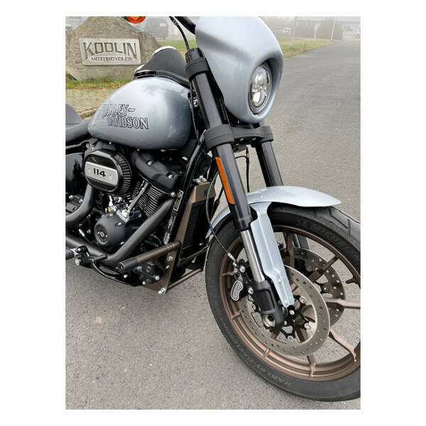 Bronze powder coated finish. Steel engine guard with integrated highway bars in the typical club style raised position, ready to rip. Complete with oil cooler frame for that all-in look.