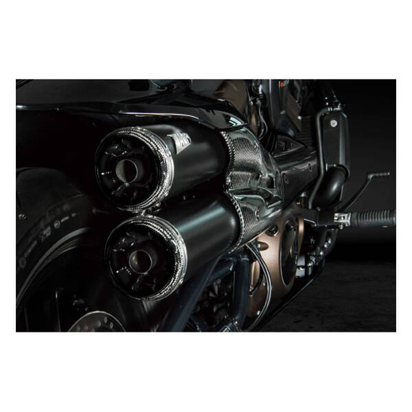 Euro 5 homologated. With cylindrical mufflers with design-machined straight-cut carbon fiber end caps. Comes a 1000°C resistant matte black Cerakote ceramic coating. Made from AISI 304 stainless steel. OEM weight 9.0kg. Zard weight 5.1kg. making it a lightweight 2-1-2 system. The exclusive two-piece carbon fiber heat shield replaces the original plastic part, for a perfect Sportster S design integration. Manufactured using high end 2D/3D lasers, robots, bending machines and skilled qualified welders for the perfect result. Note: This is a EU homologated exhaust system. Removing or modifying the Db killer on homologated exhausts will void the warranty and the homologation. Certification is valid for unmodified stock bikes, for the specific models and model years as mentioned in the product descriptions (Directive 97/24/CE, EU regulation 134/2014). The approval number, shown on the supplied relevant certificate, is stamped on every exhaust system and it must be presented to law enforcement when checked.