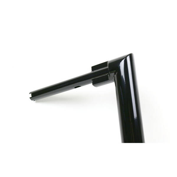 With approval. Gloss black powder coated Super Fat 2" (51mm) diameter handlebar. - Medium height. 28cm high x 82cm wide x 26cm lower width x 13cm pullback - 1-1/4" (32mm) riser area - E-throttle - Okay for heated grips - Slotted for internal wiring - Wiring slot facing down Note: Check your local MCS dealer or the MCS sales department for exact type of approval and validity on bike model and years on the test report.