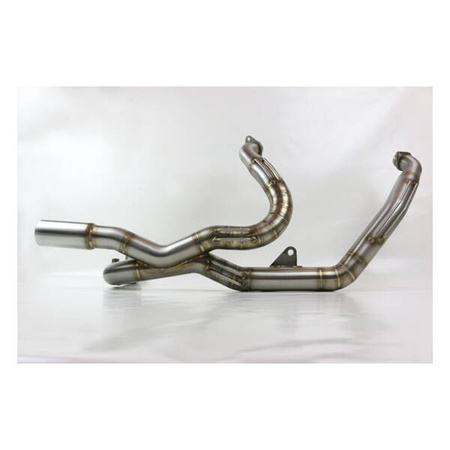 Racing system. This Kodlin 2 into 2 headpipe system is made by Zard. Like Zard's own systems, this Kodlin special is made from AISI 304 stainless steel with visible Mig welds. Manufactured using high end 2D/3D lasers, robots, bending machines and skilled qualified welders for a perfect result. - Compatible with stock or aftermarket mufflers - Compatible with stock to high performance motors - Clear stainless works finish - With a riveted 'Kodlin powered by Zard' plate - Fits with OEM floorboards or Ness Mid Controls for Touring models