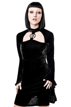 • Super miękka aksamitna, dopasowana sukienka wyposażona w pentagram. Dekolt z wycięciem z przodu i z tyłu, rozszerzane, długie rękawy. Pranie - delikatny program, chłodna woda. 95% poliester, 5% elastan.