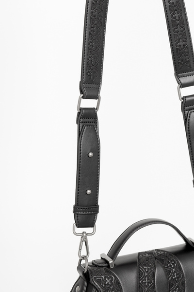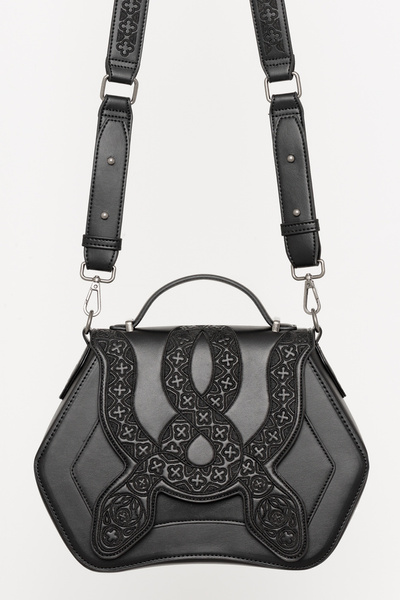 Ta elegancka torebka na ramię z pewnością zachwyci Twoją gotycką duszę. Haftowane węże z katedralnymi motywami to symbol transformacji i tajemnicy. Torebka jest idealna na każdą okazję, gdy chcesz poczuć się wyjątkowo. Podkreśli Twoją unikalną, mroczną elegancję ♥