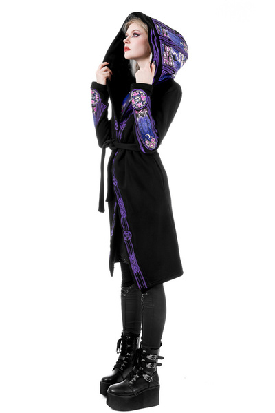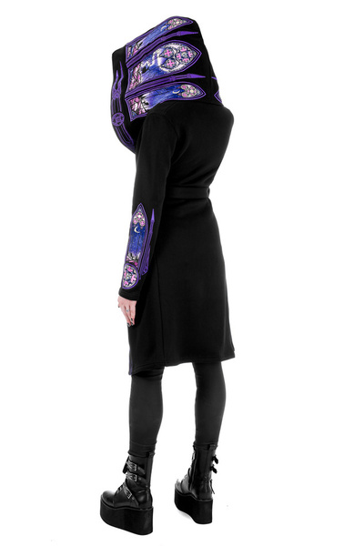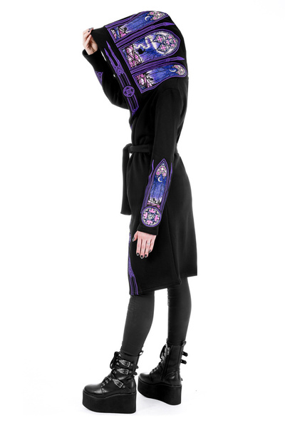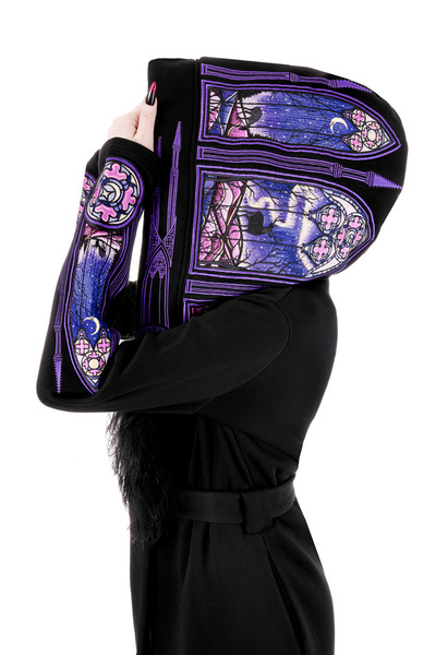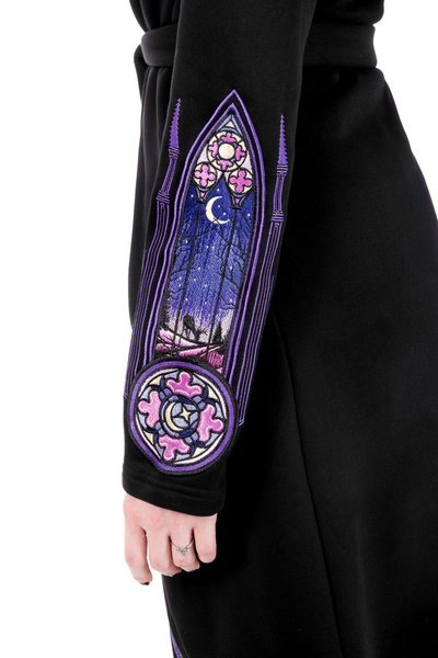 ⋆ Detale haftu inspirowane gotycką architekturą i zorzą polarną zdobią kaptur, rękawy i poły bluzy